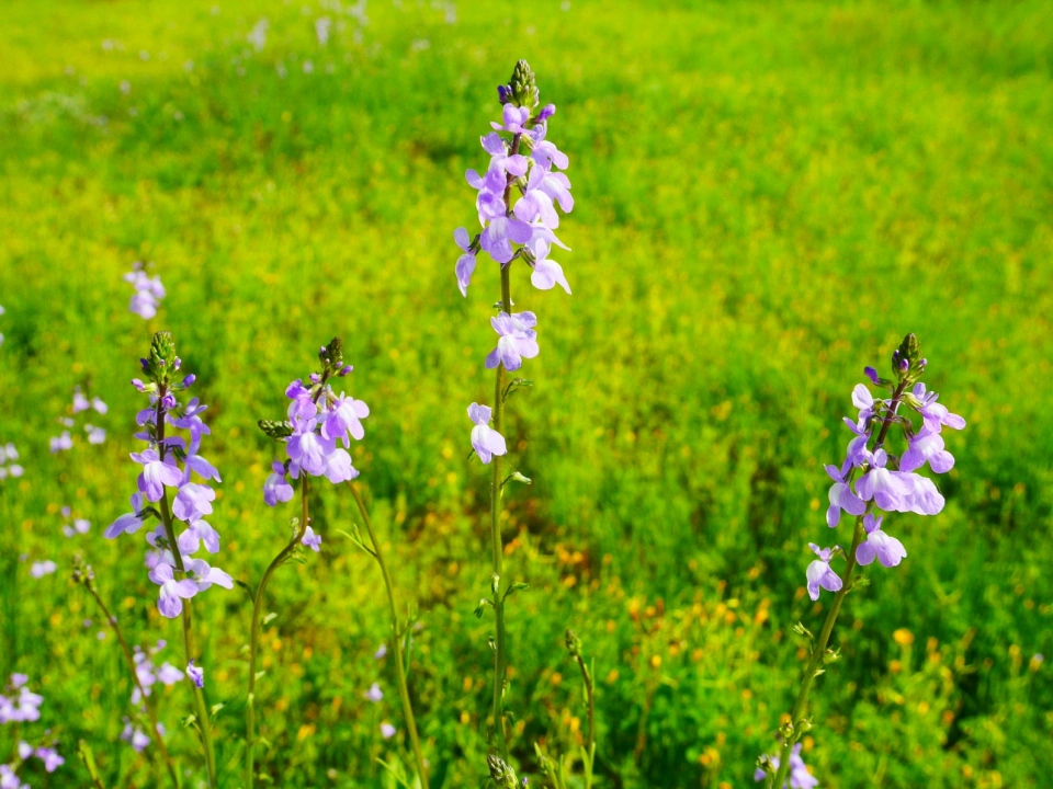 細い茎と淡い紫の花が特徴で、春の風景をやわらかく彩ります。