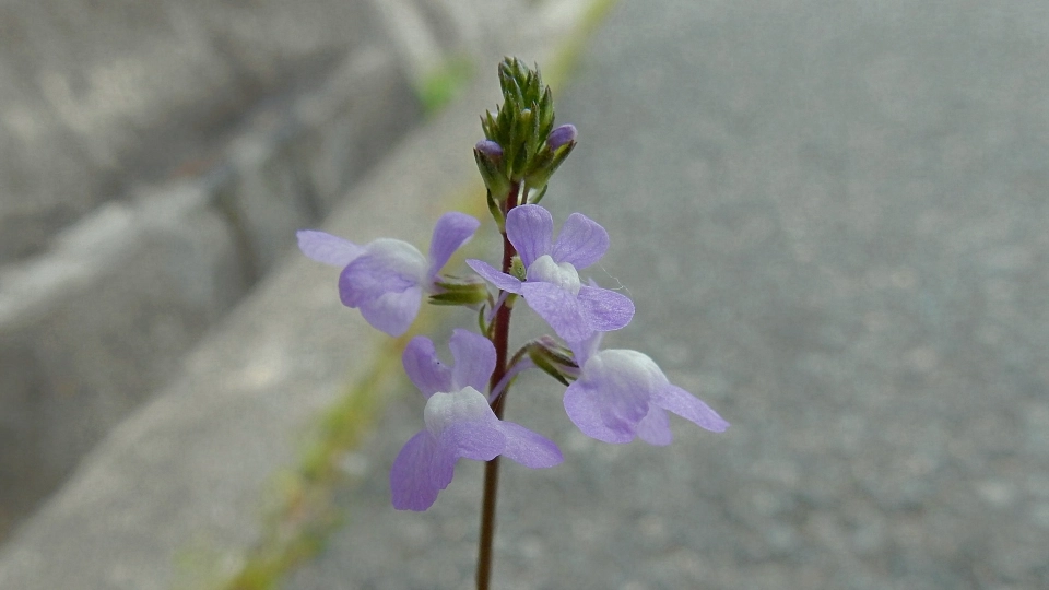 マツバウンランは、道端や空き地にひっそりと咲く小さな外来の花。