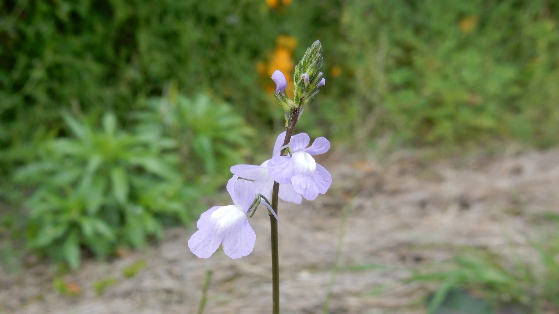 マツバウンランは細く立ち上がり、上の方に花をつけます。