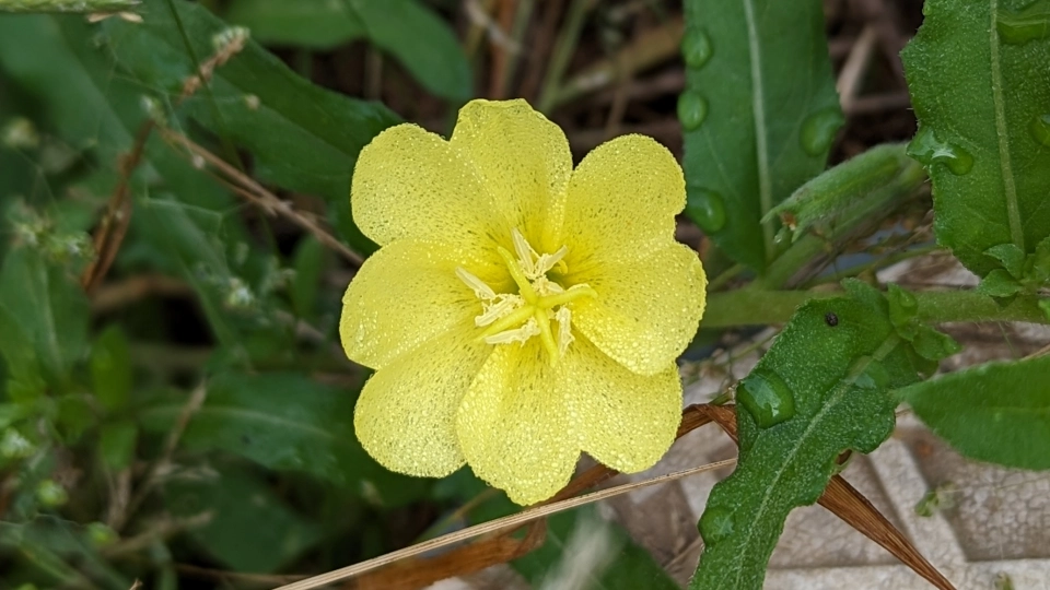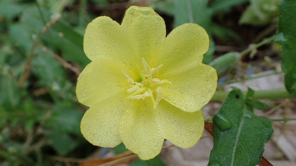 コマツヨイグサ(小待宵草)は名前の通り、径2~3cmほどの小さな花が咲くのが特徴です。色は淡い黄色。夕方に花が開くことから、宵を待って花が咲く「待宵草(マツヨイグサ)」という名前が付けられました。花は一夜限りで、翌朝には花がしぼみ始めます。花がしぼむと橙色に変わるのも特徴の一つ。ですがマツヨイグサの仲間で色が変化しないのはオオマツヨイグサぐらいだそうなので、花だけで見分けるのは難しそうです。