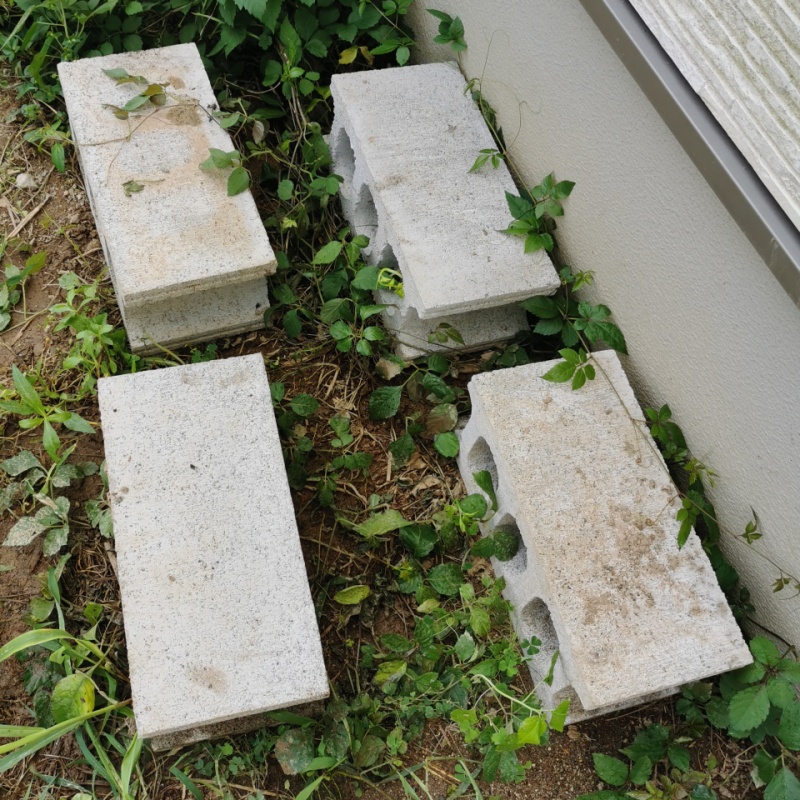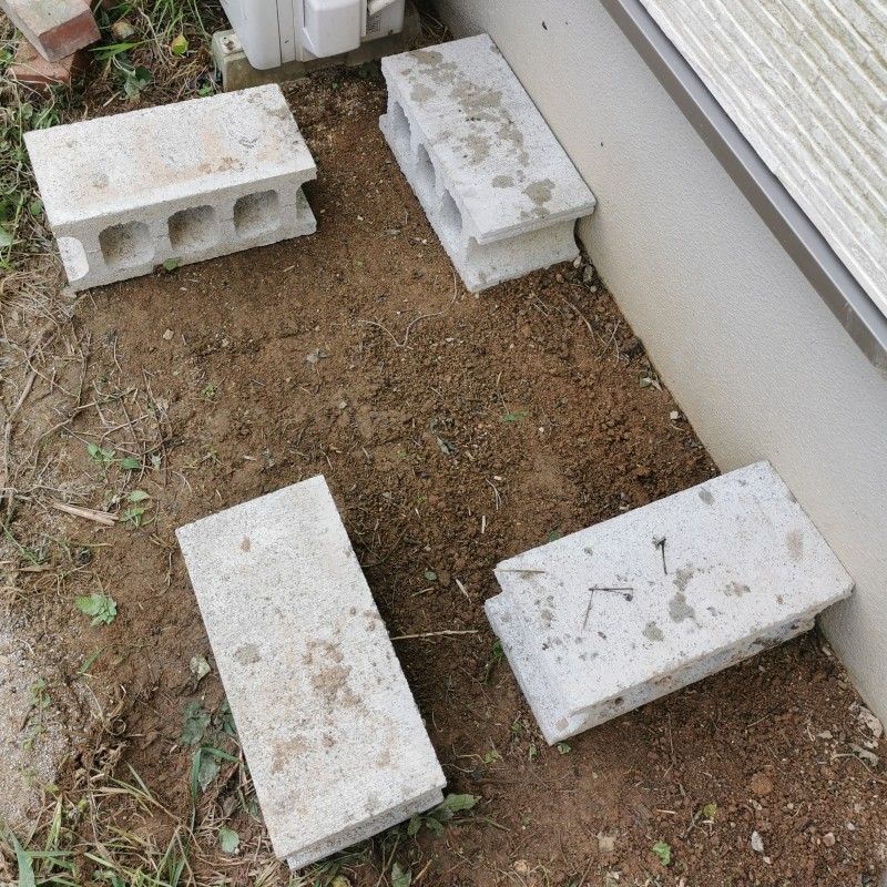 - 雨水タンクの土台となるブロックを置きます。ブロックの向きはどちらでもOKです。