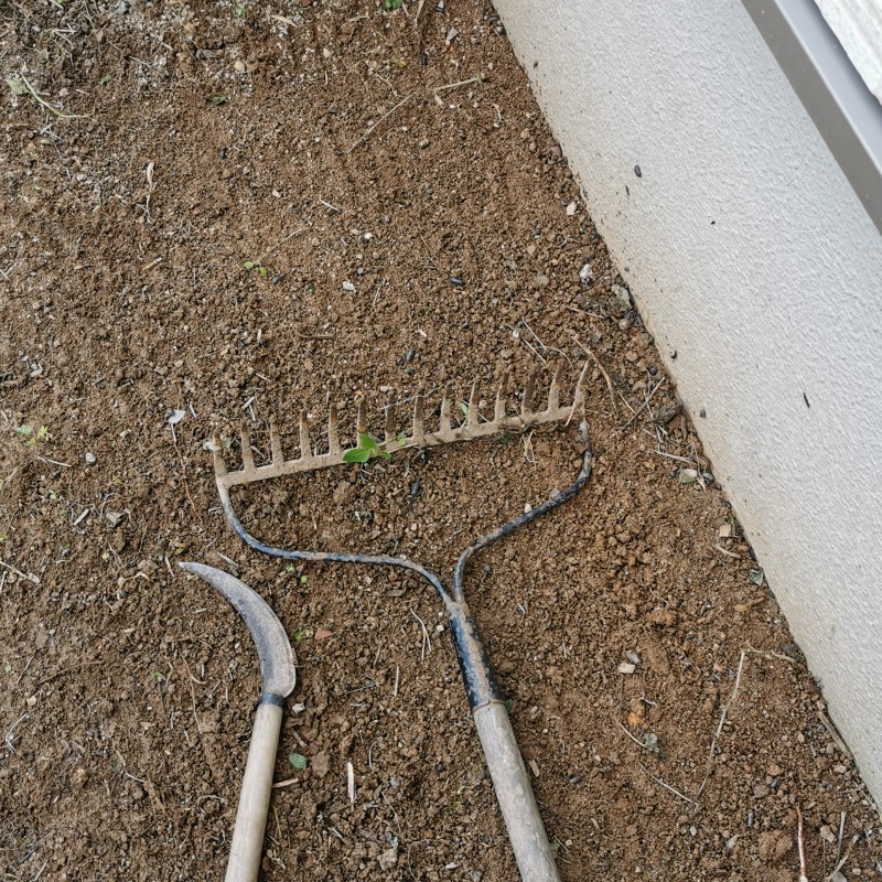 - 設置する場所の草を刈り、地面を平らにします。