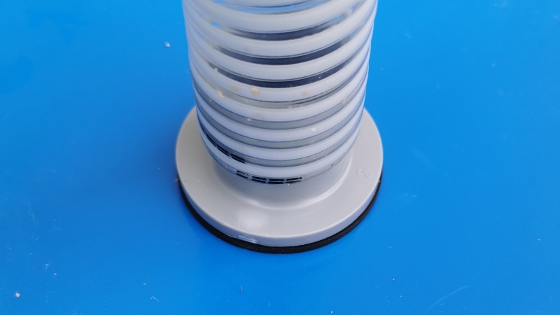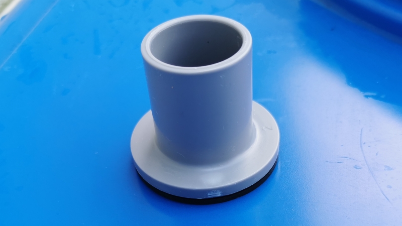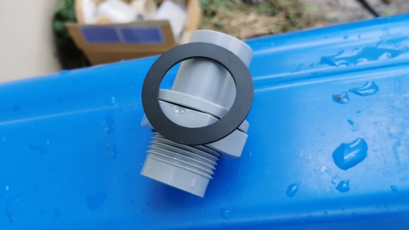 - 排出口に取り付けるジョイントを用意します。このようにゴムパッキンを奥までしっかり押し込みます。