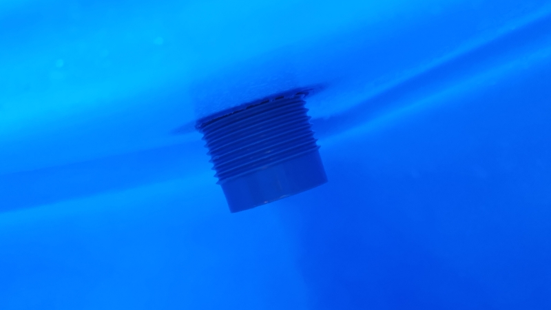 - 以上で排出口の取り付けは完了です。バルブを回すとこのように水の出口が開きます。