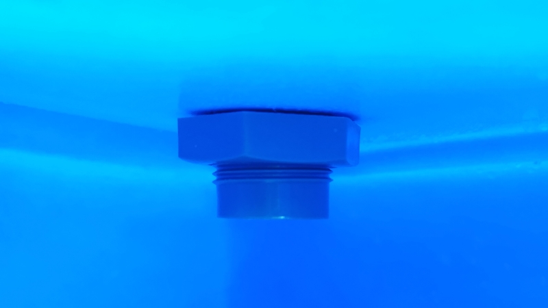 - 雨水タンクの内側から、ソケットのネジを締めます。