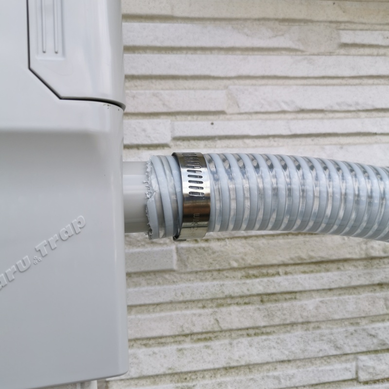- 集水器にホースをつなぎます。ホースバンドを使ってしっかりと固定してください。