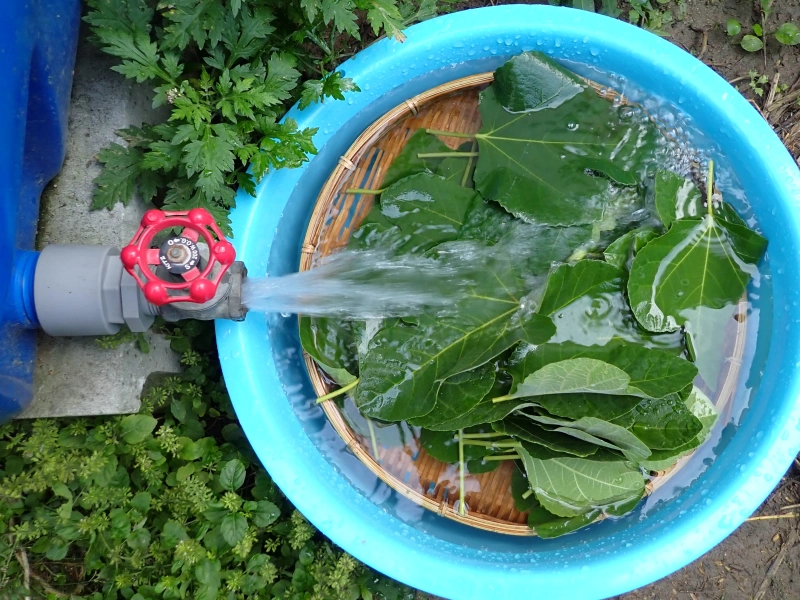当サロンでは雨水タンクに溜まった水を、菜園の水やりや野菜の洗浄、鶏の飲み水などに利用しています。