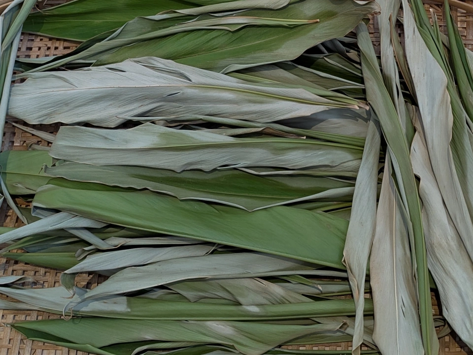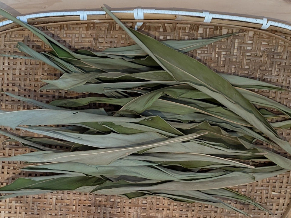 室内で乾燥させた月桃の葉
