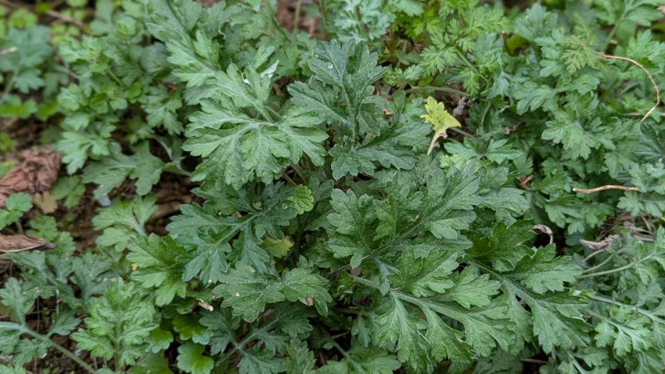 ふわかるにこの庭でもヨモギの新芽が萌え出てきました。