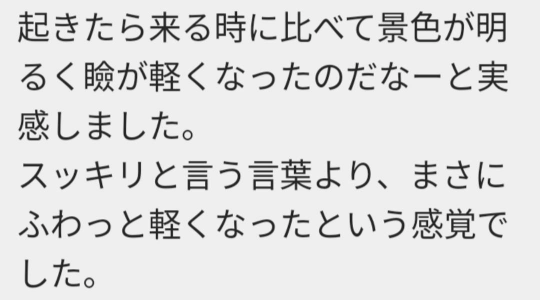 スッキリという言葉より、まさにふわっと軽くなったという感覚でした。